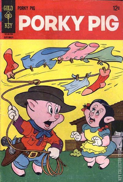 Home / Western / Porky Pig / Porky Pig #14 Western Released September 1967 Porky Pig #14 Add to Collection Want It Synopsis No synopsis available. Issue 15 of 112 Add to Collection Buy it on eBay Buy on eBay Low $1 Mid $2 High $8 Synopsis No synopsis available. Details Series Porky Pig Cover Date September 1967 Pages 36 UPC N/A Cover Price $0.12 Final Order Cutoff N/A Creators No creators listed. Price Guide Log in or subscribe to access detailed graded price information and market insights. Log In Subscribe