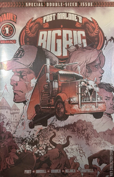 Double-length collects chapters 1 & 2! Post Malones BIG RIG. THEY PRAYED FOR A MIRACLE. THEY GOT 25 TONS AND 18 WHEELS OF HOLY WEAPON. The Dark Ages&Demon hordes plague Europe as Hell invades Earth. The Six Petals, a secret sect of The Knights Templar, are in desperate need of a means to drive back the scourge and turn the tide of the onslaught. What crashes to earth is The Rig, a fully loaded tractor trailer. In the aftermath of its arrival, the only man left standing is an enigmatic former priest excommunicated from The Six Petals. He will become Trucker and lead the fight against Hell behind the wheel of a demon-slaying machine. Created by Post Malone. Written by Post Malone and Adrian Wassel. Drawn by Barbaric co-creator and Dark Knights of Steel artist Nathan Gooden.