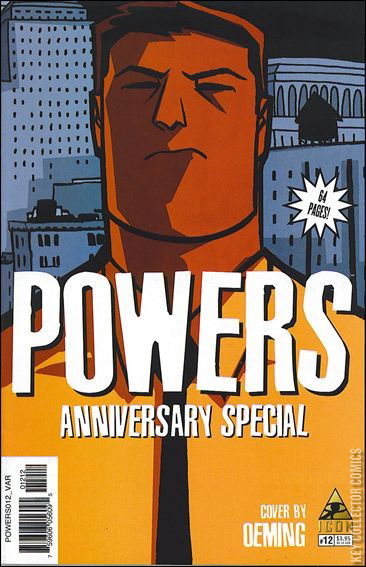 ANNIVERSARY SPECIAL EXTRAVAGANZA!!!! Our fiftieth issue!! FIFTIEST!! (If, of course, we hadn't started the renumbering in a very successful move to pander to a larger audience.) But what will this special fiftieth issue entail? A lot. Because you asked for it! how about a short story written by Oeming and drawn by Bendis? How about two covers? One by Oeming and one by Bendis that when put together make one very cool image? How about double sized? How about an exclusive retrospective interview and a giant sized letter column and a couple of contractually obligated house ads? All that and it's a perfect jumping on point for new readers! Homicide Detectives Christian Walker and Deena Pilgrim investigate murders specific to superhero cases. and with all superheroes declared illegal, the city is in chaos. From the writer of some of your favorite marvel comics, (New Avengers, USM, Daredevil, Secret War) comes a brand new chapter from the award winning book!