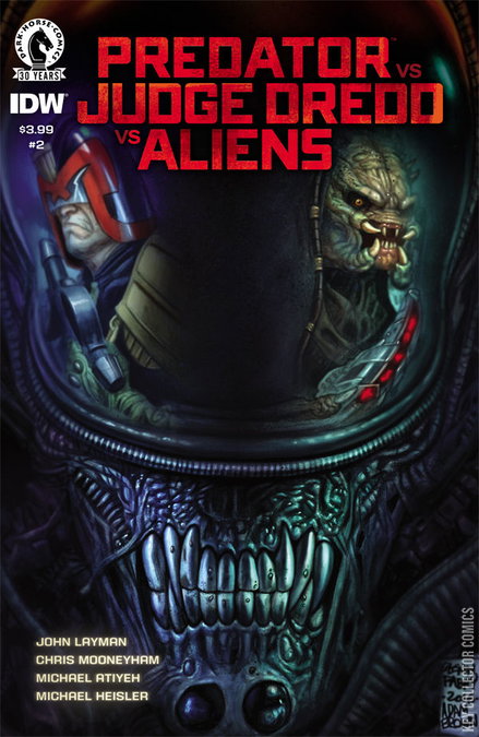 Want to make apocalypse stew? Throw in four Judges, one insane genetic scientist, a smattering of emoji-based cultists, a dash of Predator, and a pinch of essence of xenomorph, mix, and retreat to the nearest bunker. In this issue, Dredd follows a criminal cult leader into the Alabama Morass. A crew of Predators arrives on Earth to rescue a kidnapped comrade. And they both unwittingly wander into the territory of a revenge-obsessed, gene-splicing scientist who's just gotten his hands on a xenomorph skull-and the universe's deadliest DNA! o Written by Eisner Award-winning, New York Times best-selling Chew creator John Layman!
