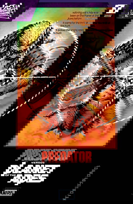 WORLDS COLLIDE! When a deadly Yautja crash-lands on the legendary Planet of the Apes, two worlds will collide for the very first time! After a rescue mission gone wrong, astronaut Arch finds herself embedded in a hostile ape society where humans are subservient. But the hunters soon became the hunted when the apes find themselves being stalked by Predators! A three-way war is about to erupt between humans, apes and Yautja - who will reign supreme?! RATED PARENTAL ADVISORY.
