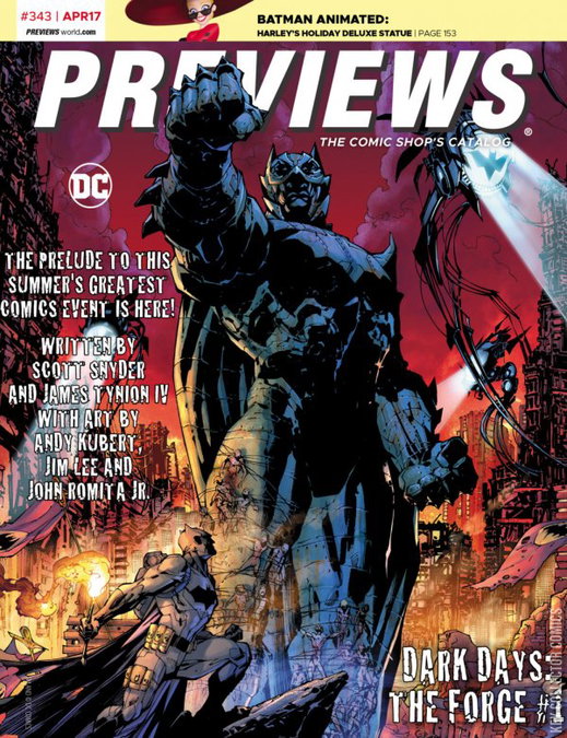 THIS MONTH'S COVER ART: New projects from DC Entertainment and Dark Horse Comics! THIS MONTH'S THEME: Summer Fashion Show PREVIEWS is your ultimate guide to comics, graphic novels and pop-culture merchandise available from your local comic book shop... revealed up to 2 months in advance! Read detailed product descriptions and storylines for hundreds comic books and graphic novels from the top comic book publishers; see the coolest toys and pop-culture merchandise on Earth; plus PREVIEWS Exclusive items you'll find nowhere else! It's a great monthly read to find out what's at comic shops! This April issue features items scheduled to ship in June 2017 and beyond.