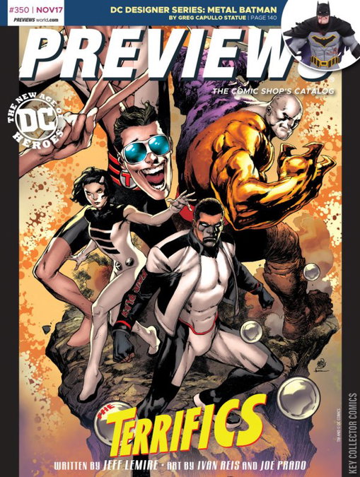 THIS MONTH'S COVER ART: New projects from DC Entertainment and TBD! THIS MONTH'S THEME: Sci-Fi and Fantasy Our landmark 350th issue! PREVIEWS is your ultimate guide to comics, graphic novels and pop-culture merchandise available from your local comic book shop... revealed up to 2 months in advance! Read detailed product descriptions and storylines for hundreds comic books and graphic novels from the top comic book publishers; see the coolest toys and pop-culture merchandise on Earth; plus PREVIEWS Exclusive items you'll find nowhere else! It's a great monthly read to find out what's at comic shops! This November issue features items scheduled to ship in January 2018 and beyond.