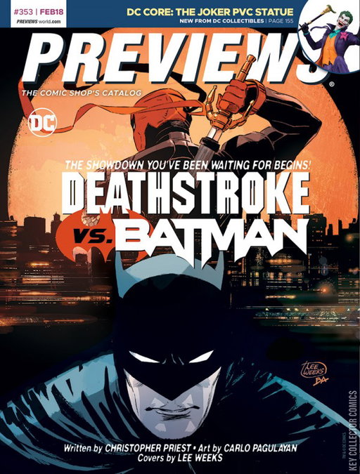 THIS MONTH'S COVER ART: New projects from Top Publishers! THIS MONTH'S THEME: Black History Month PREVIEWS is your ultimate guide to comics, graphic novels and pop-culture merchandise available from your local comic book shop... revealed up to 2 months in advance! Read detailed product descriptions and storylines for hundreds comic books and graphic novels from the top comic book publishers; see the coolest toys and pop-culture merchandise on Earth; plus PREVIEWS Exclusive items you'll find nowhere else! It's a great monthly read to find out what's at comic shops! This February issue features items scheduled to ship in April 2018 and beyond.