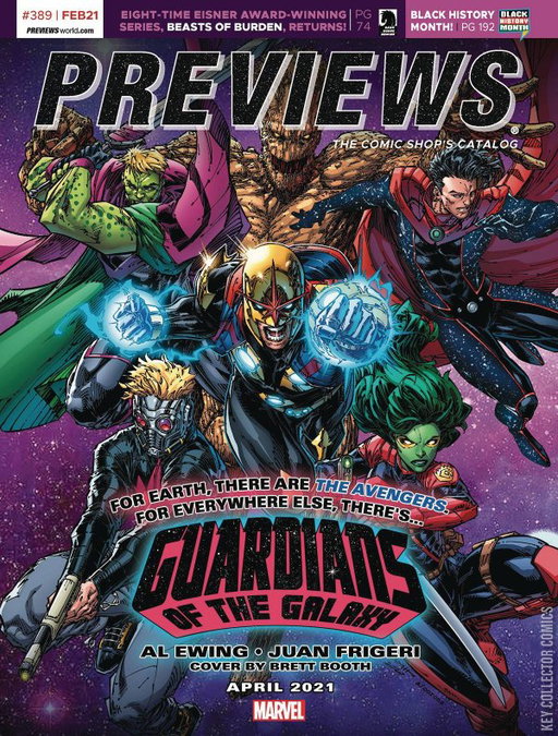 THIS MONTH'S COVER ART: Two Great Publishers! THIS MONTH'S THEME: Black History Month! PREVIEWS is your ultimate guide to comics, graphic novels and pop-culture merchandise available from your local comic book shop... revealed up to two months in advance! Read detailed product descriptions and storylines for hundreds comic books and graphic novels from the top comic book publishers and see the coolest toys and pop-culture merchandise on Earth! Plus: PREVIEWS Exclusive items you'll find nowhere else! It's a great monthly read to find out what's at comic shops! Each issue includes a download code for a FREE digital edition of this month's PREVIEWS (plus Marvel PREVIEWS and Image Comics)! This February issue features items scheduled to ship in April 2021 and beyond.