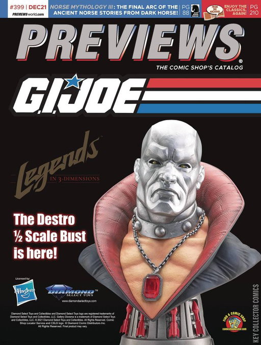 THIS MONTH'S COVER ART: Diamond Select Toys & Image Comics! THIS MONTH'S THEME: "From the Archives" Month! PREVIEWS is your ultimate guide to comics, graphic novels and pop-culture merchandise available from your local comic book shop... revealed up to two months in advance! Read detailed product descriptions and storylines for hundreds comic books and graphic novels from the top comic book publishers and see the coolest toys and pop-culture merchandise on Earth! Plus: PREVIEWS Exclusive items you'll find nowhere else! It's a great monthly read to find out what's at comic shops! Each issue includes a download code for a FREE digital edition of this month's PREVIEWS (plus Marvel PREVIEWS)! This December issue features items scheduled to ship in February 2022 and beyond.