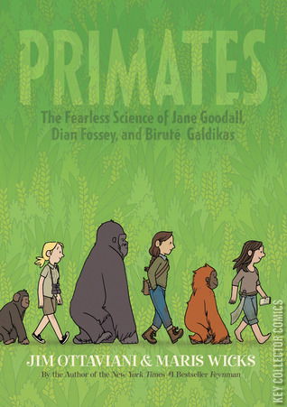Jim Ottaviani returns with an action-packed account of the three greatest primatologists of the last century: Jane Goodall, Dian Fossey, and Biruté Galdikas. These three ground-breaking researchers were all students of the great Louis Leakey, and each made profound contributions to primatology—and to our own understanding of ourselves. Tackling Goodall, Fossey, and Galdikas in turn, and covering the highlights of their respective careers, Primates is an accessible, entertaining, and informative look at the field of primatology and at the lives of three of the most remarkable women scientists of the twentieth century. Thanks to the charming and inviting illustrations by Maris Wicks, this is a nonfiction graphic novel with broad appeal.
