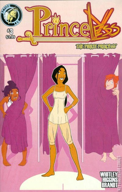 After the events of issue 2, Adrienne awakens alone on the beach without her armor. Where has Raven gone and what is she after anyway? Also, PIRATE FIGHT! The Eisner-Award nominated PRINCELESS continues! Look for the Limited Edition (2000 copies) clothing cover.
