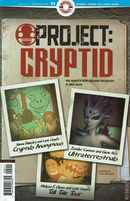 In this cryptid-packed issue, we give you not one, not two, but three thrilling stories! Melissa F. Olson and Lane Lloyd take us to the wilds of Wisconsin, where we meet the fearsome Hodag. Newcomer and rising star Hanna Bahedry teams with Lloyd to give us a glimpse into a secretive Cryptids Anonymous meeting. And finally, Zander Cannon and superstar artist Gene Ha bring us a tale of interterrestrial love!