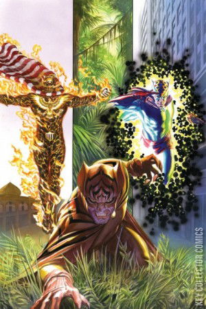 The Inheritors have fled the battle with the Superpowers and taken the Super Mysterymen back to Swisslakia to educate the state sponsored heroes in their version of the events. Meanwhile, The Big Shots work on their plan to capture Zeus while other members of the team confront Captain Future in a battle that will change all of their lives - and the world - forever! PLUS: The origin of The Face by Ross, Klauba and Kruger!