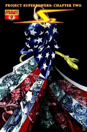 The all-out action continues month in and month out from Dynamite, Ross, Krueger, and Salazar! Things are coming to a head between the Superpowers and Zeus (formerly their ally, Captain Future), but as that battle reaches its climax, another old foe is waiting in the wings... Plus: The painted origin of The American Crusader bonus spread by Ross, Krueger and Doug Klauba!