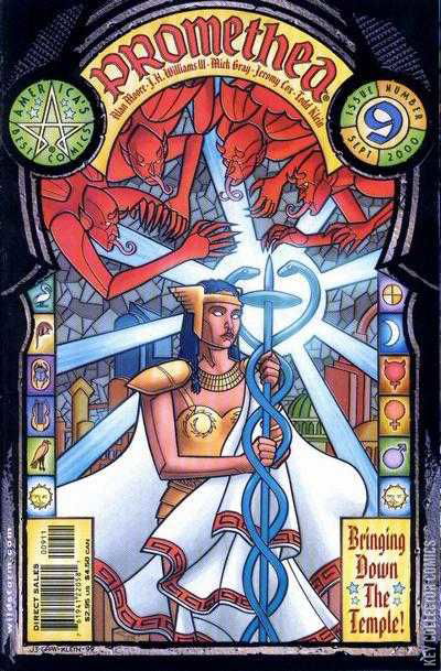What is the Temple? What are the secrets of the sinister organization that has plagued Promethea during her many incarnations? Following last issue's apocalyptic assault by the demons of Benny Solomon, our heroine decides to race the trouble back to its source and burn out the cult at its roots, once and for all...although her enemy may not turn out to be quite as she'd imagined. Also: a mystery hangs over the fate of Sophie's now-deceased predecessor, Barbara; and Sophie finds herself making a most unusual pact with someone named Faust.Print Run: 26,637