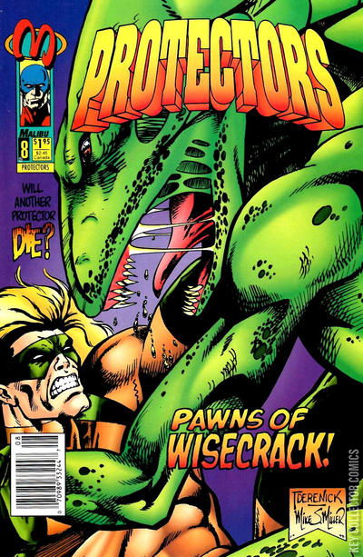 The Protectors enter the portal to another dimension found by Thresher and Air Man previously. They enter a domain that resembles hell and is actually in control of a super villain from Earth known as Wisecrack. When Wisecrack learns of intruders in his realm, he sends a force to attack the interlopers. The Protectors battle against human-like flying dinosaurs almost immediately. The Protectors are also assault on the ground and the superhero team find their opponents easily fallen in battle. However, the foes have the sheer numbers and they are able to kidnap both Arc and Gravestone. Man of War gathers the team and briefly reflects on the events that have led them there, including the meeting where Marcia Beckworth revealed her new-found superpowers. Unknown to the team, another superhero named the Arrow, who is determined to join the Protectors, was a stowaway on the helicopter that transported the team to the portal, located in the town of Brinkston. While there, Man of War expresses his concern for the new Night Mask's lack of experience. Before that discussion can progress, Eternal Man reveals that he has found the portal with his mysterious powers. Eternal Man explains to the team that he can hold the portal open for only six hours. It is up to Man of War to risk the team to find potential survivors from the Brinkston disaster of five year sgo. He decided to go for it, for the sake of the possible survivors. They enter the portal and immediately afterwards, so does the Arrow. After the brief reflection, Man of War stops Amazing Man from killing one of the dinosaur creatures they have defeated. Amazing Man resents not being able to kill the monster but Man of War stands firm. The team leader instructs Ferret to track their missing teammates down and he does. Meanwhile, the Eye watches their journey the whole while, Gravestone and Night Mask are brought to Wisecrack, who recognizes Gravestone as his old rival from the past. He wants to know how they came from Earth, so he can return there, but the heroes remain tight lipped. He sends Gravestone to a torture chamber to extract his answer. Meanwhile, the Protectors finally arrive at Wisecrack's castle.