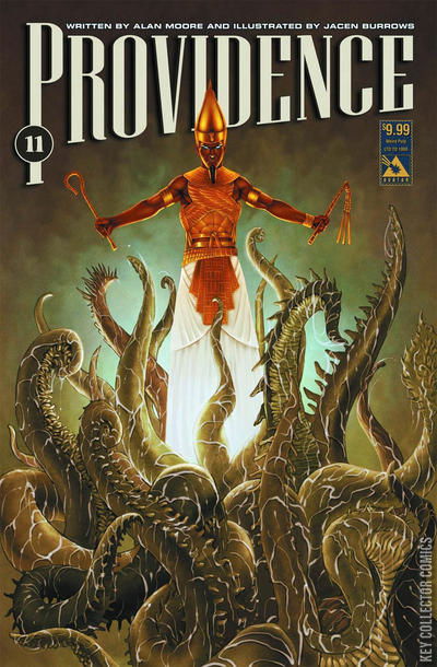 For Black is his name and Black is his destiny. Everything has changed for Robert Black and perhaps for all of us. This is Providence… or is this Yuggoth? Alan Moore's masterpiece reaches its denouement and nothing will be the same. Available with Regular, Pantheon, Portrait, Dreamscape Wraparound, Women of HPL, the painted Weird Pulp and a special Ancient Tome Incentive cover, all by collaborator Jacen Burrows..