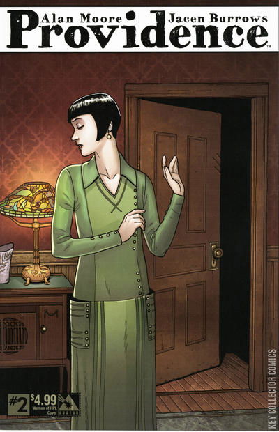 In this giant-size, ad-free, second issue, Alan Moore's breathtaking epic PROVIDENCE continues to weave a complex tapestry of modern horror. With his artistic partner Jacen Burrows, they lead the main character Robert Black on the first leg of his exploration of the seedy underbelly of America. Moore has designed every cover, every single page, and every nuance of this work to create his most fully-realized vision to date. There are no ads, with all 40 pages written by Moore. Painstakingly researched, meticulously produced, this is a sequential masterpiece that will serve as important a call to the next generation of comic book writers as Watchmen did 30 years ago: this is a definitive demonstration of just how good a comic book can be. Available with Regular, Pantheon, Portrait, Dreamscape Wraparound, Women of HPL, and a special Ancient Tome Incentive cover, all by collaborator Jacen Burrows.