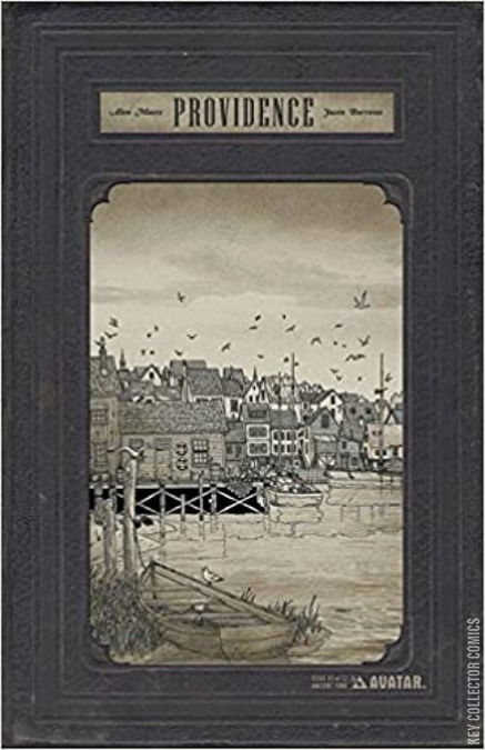 In this super-sized, ad-free, third issue, Alan Moore continues to re-define horror in this amazing tome of Lovecraftian influenced nightmares. Providence is an amazing and unique work where Moore has written every cover, every single page, and every nuance of this work to create his most fully-realized vision to date. In this issue, 'A Lurking Fear', Robert Black visits the Bogg's Refinery in Salem and is introduced to some most peculiar-looking local folks. And a few denizens with very bad intentions. Available with Regular, Pantheon, Portrait, Dreamscape Wraparound, Women of HPL, and a special Ancient Tome Incentive cover, all by collaborator Jacen Burrows.