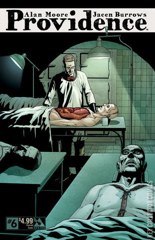 Fans and critics alike are hailing Alan Moore's Providence as the horror event of the year! Mild mannered newsman Robert Black is uncovering a mysterious undercurrent of fear as the pieces of the Lovecraftian puzzle slowly begin to make a coherent picture. The dramatic tension is building with each incredible ad-free 40 page issue and this issue begins the big unveils. The work has been researched and developed by Moore and Burrows over the course of several years. And the end result is an amazing tome of Lovecraftian influenced nightmares where Moore has written every cover, every single page, and every nuance of this work to create his most fully-realized vision to date.Fans of Moore's immersive style and meticulous grasp of storytelling will be thrilled to add this essential piece of comics history to their collections! Available with Regular, Pantheon, Portrait, Dreamscape Wraparound, Women of HPL, and a special Ancient Tome Incentive cover, all by collaborator Jacen Burrows.