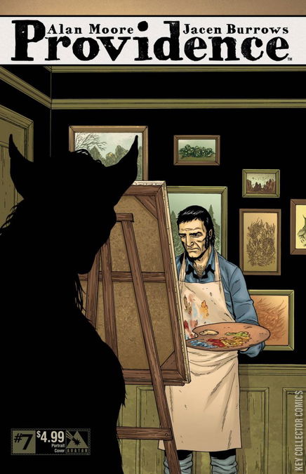 Robert Black came looking for a story but what he found is a world of misery and woe. He's become a broken man only beginning to accept the horrors of the Lovecraftian world are real and hiding in plain sight. Alan Moore and artist Jacen Burrows have delivered a slow burn tale of fear and underlying dread that has delighted fans and scholars alike. Moore has written every cover detail, every single page, and every nuance of this work to create his most fully-realized vision to date. Fans of Moore's immersive style and meticulous grasp of storytelling will be thrilled to add this essential piece of comics history to their collections! Available with Regular, Pantheon, Portrait, Dreamscape Wraparound, Women of HPL, and a special Ancient Tome Incentive cover, all by collaborator Jacen Burrows.