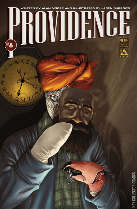 Robert Black has seen the cracks in reality and felt the cold touch of the supernatural. Now as the horrors that lie below the surface of our mundane world start to flood into his consciousness his hold on the construct of sanity begins to slip from his grasp. Alan Moore and artist Jacen Burrows have created the most realized version of Moore's Lovecraftian vision ever published. Fans and classical scholars have flocked to the pages of Providence to decipher the many layers of story being told in this masterpiece. Moore has written every cover detail, every single page, and every nuance of this work to create an unforgettable series. Fans of Moore's immersive style and meticulous grasp of storytelling will be thrilled to add this essential piece of comics history to their collections! Available with Regular, Pantheon, Portrait, Dreamscape Wraparound, Women of HPL, and a special Ancient Tome Incentive cover, all by collaborator Jacen Burrows.