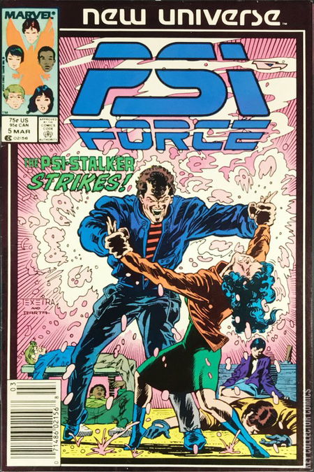 Home / Marvel / Psi-Force / Psi-Force #5 Marvel Released March 1987 Psi-Force #5 Add to Collection Want It Synopsis No synopsis available. Issue 5 of 32 Add to Collection Buy it on eBay Buy on eBay Low $1 Mid $2 High $3 Synopsis No synopsis available. Details Series Psi-Force Cover Date March 1987 Pages 23 UPC 07148602156803 Cover Price $0.75 Final Order Cutoff N/A Creators No creators listed. Price Guide Log in or subscribe to access detailed graded price information and market insights. Log In Subscribe