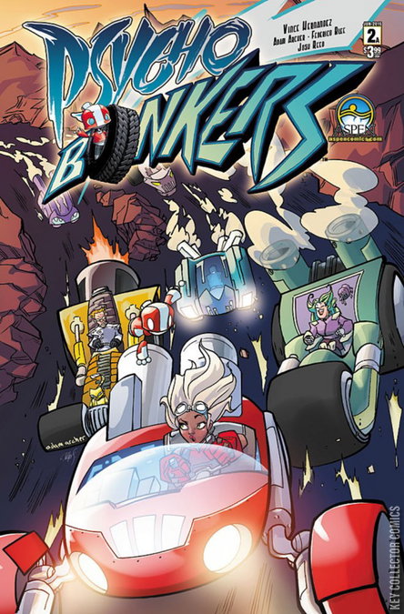 Crack the speed barrier wide open in this thrilling new adventure that redefines what it means to go full throttle! Following the tragic events of issue one, Shine must come to grips with the fact that, besides her Bonk Racer and Gabbo, she is now alone. However, in the present, and a crucial leg of the Super Bonk Rally, the team discovers that having company around can actually be far worse! Told in a series of five legs within the race of all races-the Super Bonk Rally, this five issue mini-series will span amazing landscapes and death-defying terrain, as these racers go completely Psycho Bonkers!