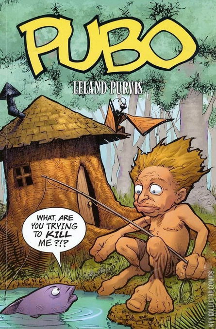 Leland Purvis, the Xeric Award-winning creator of Vox (which Sequential Tart called "the Standout new entry onto the [small press] scene this year"), takes a more lighthearted approach with a hilarious story about a bizarre misfit. The victim of an unusual - and one can only assume pointless - medical experiment, Pubo finds himself at the mercy of the animals and few humans in the deep dark woods of the Pacific Northwest. And he'd probably be just fine, if he weren't such a grumpy little bastard. But his natural, primal inclinations combine with his big-city, gruff demeanor, and it might turn out that there's nowhere for a little guy with a giant head to fit in.