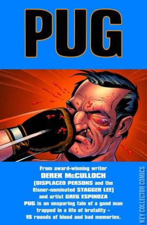 Six years ago, the Darlinger fight ended Jake's career, cost him his family, and put him in a downward spiral that looked like it had no end. Now he's doing collections for a small-time loan shark and thinking maybe it's time he set a few things straight in the world. From award-winning writer DEREK McCULLOCH (DISPLACED PERSONS and the Eisner-nominated STAGGER LEE) and artist GREG ESPINOSA, PUG is an unsparing tale of a good man trapped in a life of brutality - 15 rounds of blood and bad memories.