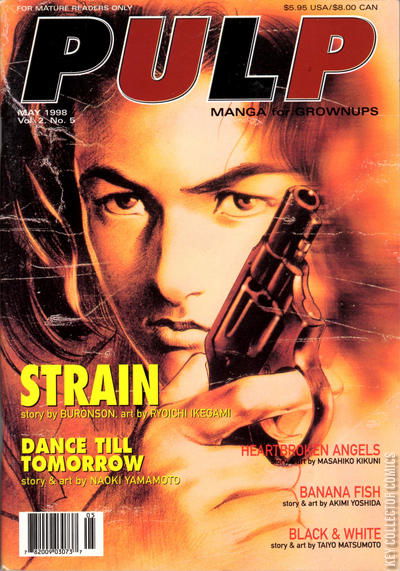Home / Viz / Pulp / Pulp #5 Viz Released May 1998 Pulp #5 Add to Collection Want It Synopsis No synopsis available. Add to Collection Buy it on eBay Buy on eBay Low $1 Mid $2 High $6 Synopsis No synopsis available. Details Series Pulp Cover Date May 1998 Pages 132 UPC N/A Cover Price $5.95 Final Order Cutoff N/A Creators No creators listed. Price Guide Log in or subscribe to access detailed graded price information and market insights. Log In Subscribe