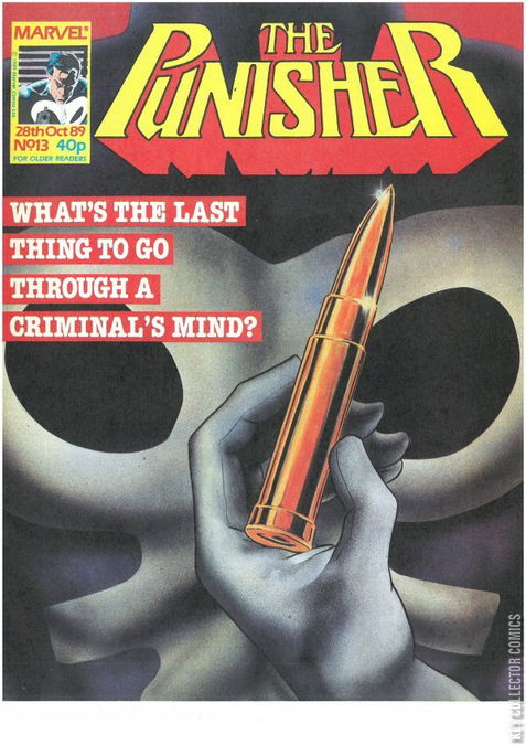 Home / Marvel UK / Punisher / Punisher #13 Marvel UK Released October 1989 Punisher #13 Add to Collection Want It Synopsis No synopsis available. Add to Collection Buy it on eBay Buy on eBay Low $1 Mid $2 High $3 Synopsis No synopsis available. Details Series Punisher Cover Date October 1989 Pages 32 UPC N/A Cover Price $0.80 Final Orders Cutoff N/A Creators No creators listed. Price Guide Log in or subscribe to access detailed graded price information and market insights. Log In Subscribe