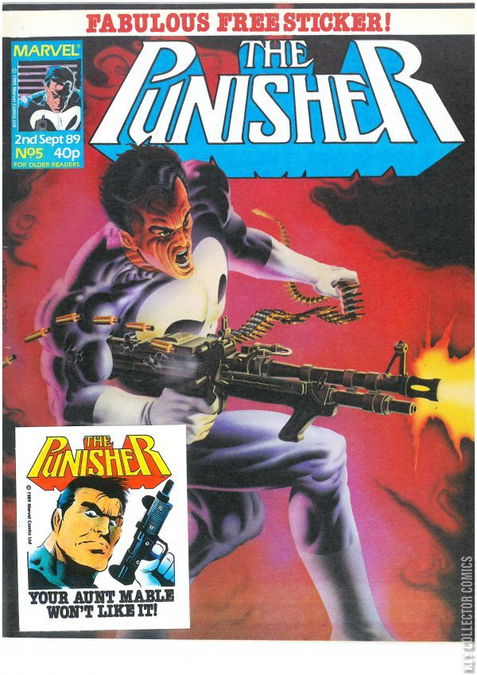 Home / Marvel UK / Punisher / Punisher #5 Marvel UK Released September 1989 Punisher #5 Add to Collection Want It Synopsis No synopsis available. Add to Collection Buy it on eBay Buy on eBay Low $1 Mid $2 High $3 Synopsis No synopsis available. Details Series Punisher Cover Date September 1989 Pages 32 UPC N/A Cover Price $0.80 Final Orders Cutoff N/A Creators No creators listed. Price Guide Log in or subscribe to access detailed graded price information and market insights. Log In Subscribe