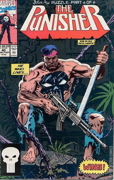 "Jigsaw Puzzle: Part 6 of 6." Punisher and Joy confront the Rev and the demon Belasco. Giving Punisher and Joy a head start, Belasco revives Jigsaw. In a fight, Jigsaw is once again disfigured by Punisher when running into a thorny plant. Having foiled Rev's plan, Frank allows Rev to leave. However, when the Rev attempts to kill Frank, he sets off planted explosives in his helicopter, killing Rev. Awakening after Punisher has departed, Jigsaw once again swears he will take his revenge on Punisher.