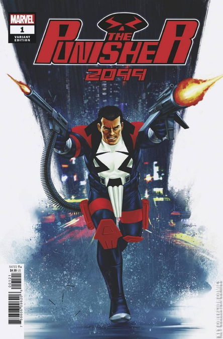 The future has arrived, but world peace certainly hasn’t! In fact, with the streets of Nueva York more crime-ridden than ever, who will rise up to defend the vulnerable population from the corruption? Looks like it’s up to Punisher 2099 to clean up the block—the only question is, who’s behind the mask? Don’t miss out on your glimpse into the future from rising stars, Lonnie Nadler & Zac Thompson ( AGE OF X-MAN , GUARDIANS OF THE GALAXY ANNUAL )!