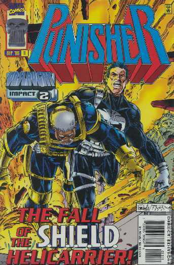 Part of the Onslaught: Impact 2 storyline. Sentinels have invaded New York and Punisher wishes he had a bigger gun to take them out. But when the Sentinels attack a S.H.I.E.L.D. helicarrier, scavengers head for the downed ship in order to take whatever they can grab by any means necessary. Punisher leaps into action to save G.W. Bridge and the rest of the S.H.I.E.L.D. personnel.