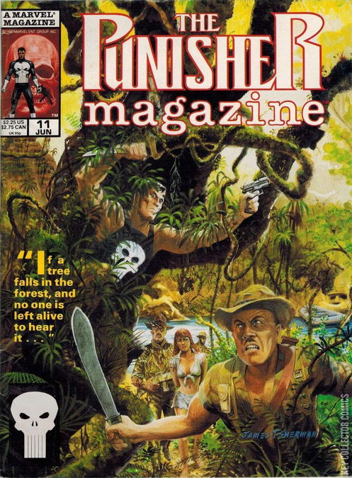 Reprints reg. Punisher #15 & 16. Painted cover art by James Sherman. The Punisher #15 cover reprint, art by Scott Williams. "To Topple the Kingpin," script by Mike Baron, pencils by Whilce Portacio (layouts), inks by Scott Williams (finishes); The Punisher and Microchip download a virus into the Kingpin's computer system, messing up his files; In response, the Kingpin hires the killer, Kliegg, to take the Punisher out. Frank gathers a small group of allies and begins to train them for his imminent war with the Kingpin. Punisher illustration by Dan Reed. The Punisher #16 cover reprint, pencils by Whilce Portacio, inks by Scott Williams. "Escalation," script by Mike Baron, pencils by Whilce Portacio (layouts), inks by Scott Williams (finishes); Sent by the Kingpin, the assassin, Kleigg, infiltrates the Punisher's Everglades compound and kills Reese before the Punisher can take him out; The Punisher and Microchip hack back into Kingpin's computer system to do more damage; The Kingpin hires a young hacker to stop Micro's cyber warfare but critical damage has already been done; The Punisher and his allies hit the hotel where the Kingpin is having to count his money by hand with his computer systems down. 52 pgs., B&W.