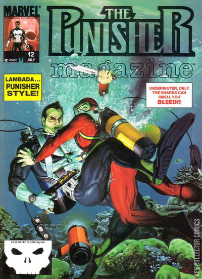 Reprints reg. Punisher #17 & 18. Painted cover art by Joe Jusko. The Punisher #17 cover reprint, pencils by Whilce Portacio, inks by Scott Williams. :"Computer War," script by Mike Baron, pencils by Whilce Portacio (layouts), inks by Scott Williams (finishes); The Punisher has to destroy his battle van to get away from Kingpin's battle tank; Kingpin hires Mr. Wong and his nephew, George, to crunch his numbers while his computer is down and they bring along an assassin to deal with the Punisher as well; Lem infiltrates Punisher's house and kills Conchita before the Punisher can take him down. Punisher illustration by Don Perlin. The Punisher #18 cover reprint, pencils by Whilce Portacio, inks by Scott Williams. "Face Off," script by Mike Baron, pencils by Whilce Portacio (layouts), inks by Scott Williams (finishes); Super hacker Jeremy contacts Micro and tells him that he is tired of working for the Kingpin and wants to switch sides; They set a meet but Jeremy is killed by his young rival, George, as he leaves; The Punisher, Microchip and Vernon infiltrate the Kingpin's tower but have to make an uneasy truce with him to walk away with their lives. 52 pgs., B&W.