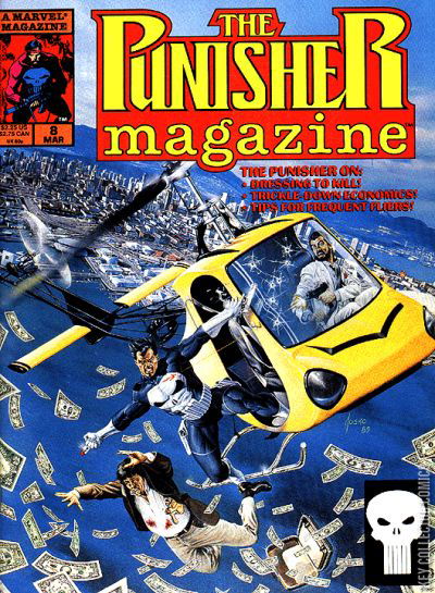 Punisher/Daredevil cross-over reprinted (Punisher 10 and Daredevil 257). Painted cover art by Joe Jusko. The Punisher #10 cover reprint, pencils by Whilce Portacio, inks by Scott Williams. "The Creep," script by Mike Baron, pencils by Whilce Portacio, inks by Scott Williams; The Punisher and Daredevil come to blows as they clash over how to deal with a killer putting cyanide in aspirin bottles. "Punisher's Fighting Techniques," script by Roger Salick, pencils by Jim Lee, inks by Scott Williams; Punisher takes the reader through a typical vigilante workout. Daredevil #257 cover reprint, pencils by John Romita Jr., inks by Al Williamson. "The Bully," script by Ann Nocenti, pencils by John Romita Jr., inks by Al Williamson; Daredevil tracks down the killer putting cyanide in aspirin but ends up having to save him from Punisher's brand of justice. Punisher/Daredevil illustration by Dan Reed. 52 pgs., B&W.