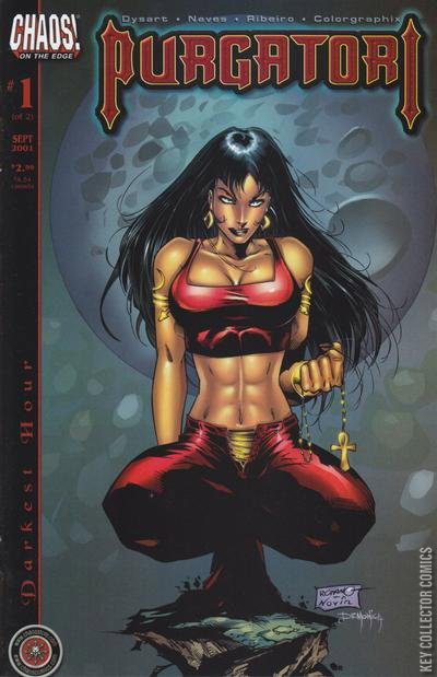 The Los Angeles dawn breaks, a mortal woman lays dying in it's golden light. Her name is Sakkara and she carries deep inside of her the sleeping demon Purgatori! Even now, as she struggles to live, fallen angels, powerful vampires, and a warrior from a once proud, now crumbling kingdom, are mobilizing to hunt down the woman who would be the Blood Goddess. Chaos! Comics is proud to present the story of one woman's struggle to overcome mortal fear and regain her rightful power in a world that wants her dead. From Joshua Dysart, writer of the cult hit Violent Messiahs, comes a new kind of Purgatori parable: the tale of Darkest Hour!
