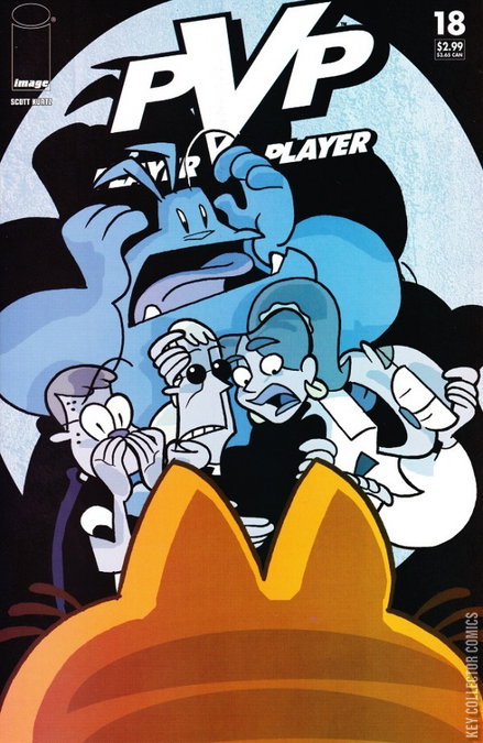 PvP Magazine gets taken to court! When office slobs Robbie and Jase are accused of plagiarism, the gang find themselves in hot water and unable to afford their legal fees. Skull breaks his promise to never again use his brain-enhancing machine in order to transform himself into a legal eagle... but things go horribly awry. Meanwhile... who is SCRATCH FURY and what are his evil plans for PvP?