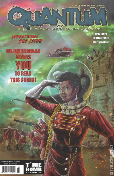 Issue 2 of the smash-hit new British anthology Quantum is a perfect bound, 52 page, US format color anthology, featuring 5 ongoing tales set in worlds that are not our own. Major Rakhana (Steve Tanner and Pete Woods), WesterNoir-Moon Cursed (Dave West, Jemma West and Joseph Parangue), Memphis (David Morris), Whatever Happened To The World's Fastest Man? (Dave West and Marleen Lowe), and Death & Taxes (Katie Cunningham and Tom Newell).
