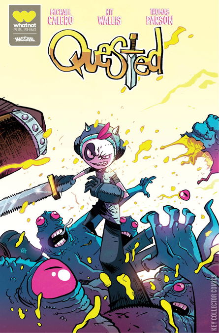 Cover by series artist Kit Wallis (Good Boy), this variant is the third in a series of three connecting covers. Quested fuses the attitude of Hellboy and the fantasy-adventure spirit of Legend of Zelda as it follows the questing misadventures of pawn shop owner and morally ambiguous hero-for-hire, Jinx, through a world filled with lizard henchmen, dungeon-bosses, and unicorn burgers! 'Episode 1: Faux Highness' When a plan to take advantage of a desperate king trying to protect his daughter goes wrong, Jinx and his two accomplices (I mean guild members!) find themselves actually having to save the princess.