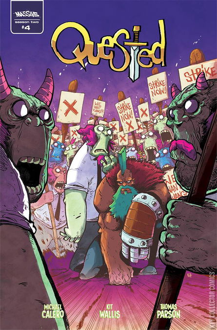 Cover by Kit Wallis, the artist behind such series as Mr Eastah, Warcorns, Good Boy, Hellicious, and the series artist on QUESTED! The misadventures continue in a brand new season of Quested by writers Michael Calero (Alpha Betas, Sumerian's American Psycho) and Thomas Parson, with art by Kit Wallis (Good Boy, Mr.Easta). 'One, Two, Three, Four, We Don't Want No King No More' Who knew the afterlife could be such�well, Hell. Hamo returns to Ferryman HQ only to find his ferry men have organized. With the ferry men on strike, souls are left to meander and Hamo has no time to regain control. With only Charlie remaining loyal, Hamo has few choices to settle the strike and catch up with Jinx and Gil.