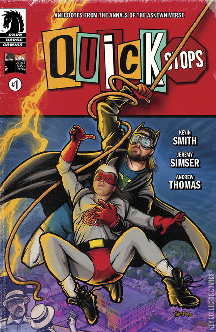 Enter the Askewniverse when pop culture nuisance Kevin Smith's brand-new anthology series opens for business, telling tall tales from the Jersey world of his classic comedies! In this premiere issue, Chronic-Con guest of honor Holden McNeil tells Alyssa Jones and a packed podcast audience his story of going green with legendary loiterers Jay and Silent Bob in the Quick Stop cooler, and how it directly led to the birth of his Bluntman and Chronic comic books! Black-and-white comics like the Clerks films. More misadventures with Jay and Silent Bob! Contains references to Kevin Smith's films like Clerks, Dogma, Chasing Amy, Mallrats, and Jay and Silent Bob: Reboot.