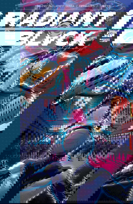 END OF STORY ARC As Jack Marlow's parade marches the streets of Chicago, RADIANT BLACK and **HORIZON **are set on collision course from which neither will emerge unscathed! Don't miss this 5th anniversary issue with an ending that once again will change RADIANT BLACK forever!