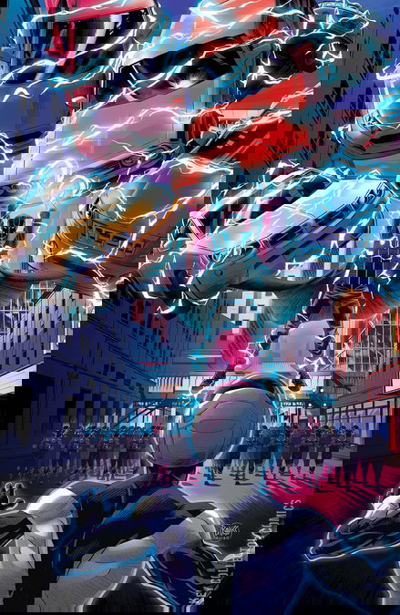 END OF STORY ARC As Jack Marlow's parade marches the streets of Chicago, RADIANT BLACK and **HORIZON **are set on collision course from which neither will emerge unscathed! Don't miss this 5th anniversary issue with an ending that once again will change RADIANT BLACK forever!