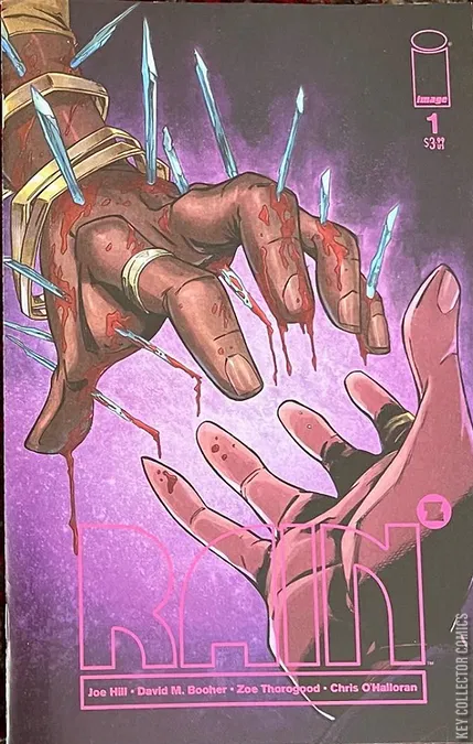 THE FIRST IN CHRIS RYALL & ASHLEY WOOD’S NEW SYZYGY PUBLISHING IMPRINT LINE OF TITLES AT IMAGE COMICS! On a seemingly normal August day in Boulder, Colorado, the skies are clear, and Honeysuckle Speck couldn’t be happier. She’s finally moving in with her girlfriend Yolanda. But their world is literally torn apart when dark clouds roll in and release a downpour of nails—splinters of bright crystal that shred the skin of anyone not safely under cover. RAIN makes vivid this escalating apocalyptic event, as the deluge of nails spreads across the country and around the world, threatening everything young lovers Honeysuckle and Yolanda hold dear. So begins a gripping 5-issue presentation of New York Times bestselling author JOE HILL’s acclaimed novella, adapted by rising stars DAVID M. BOOHER (Canto), ZOE THOROGOOD (The Impending Blindness of Billie Scott), and CHRIS O’HALLORAN (Ha-Ha).