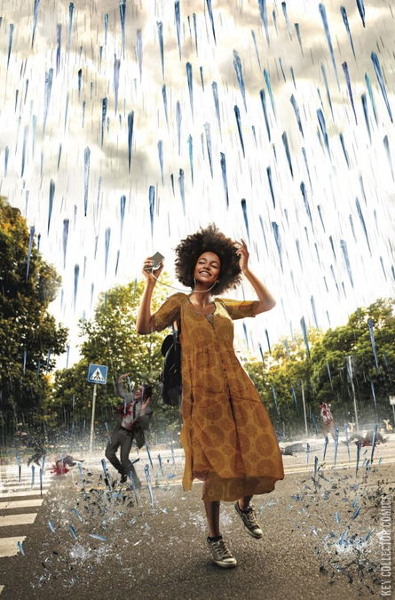 THE FIRST IN CHRIS RYALL & ASHLEY WOOD’S NEW SYZYGY PUBLISHING IMPRINT LINE OF TITLES AT IMAGE COMICS! On a seemingly normal August day in Boulder, Colorado, the skies are clear, and Honeysuckle Speck couldn’t be happier. She’s finally moving in with her girlfriend Yolanda. But their world is literally torn apart when dark clouds roll in and release a downpour of nails—splinters of bright crystal that shred the skin of anyone not safely under cover. RAIN makes vivid this escalating apocalyptic event, as the deluge of nails spreads across the country and around the world, threatening everything young lovers Honeysuckle and Yolanda hold dear. So begins a gripping 5-issue presentation of New York Times bestselling author JOE HILL’s acclaimed novella, adapted by rising stars DAVID M. BOOHER (Canto), ZOE THOROGOOD (The Impending Blindness of Billie Scott), and CHRIS O’HALLORAN (Ha-Ha).