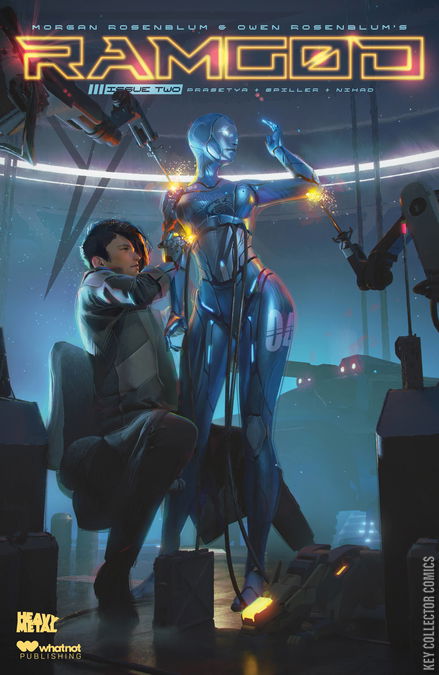 Cover by MOONeye artist Marco Locati known for his work with Aftershock and his continuing work with Heavy Metal Magazine. THE FUTURE'S MOST DANGEROUS SPORT JUST GOT A NEW PLAYER. NCPD Beat Cop, Clint Bowler has his son Malcolm for the weekend -the one time per month he's allotted by the courts. While at a local diner, their quality time is interrupted when a nearby crime in progress is reported. Though off duty, Clint chooses to pursue the perpetrator. The chase is captured on video and goes viral. Meanwhile, RAMGOD, the world's hottest sport, has just announced that all teams must add a fifth player. The Barracudas, fresh off a loss in the finals, must now figure out who to add to their tight knit group, given their nefarious 'side hustle.' RAMGOD feels like Point Break meets Fast & Furious, but in a CyberPunk setting that introduces a brand new super high-octane global sport.