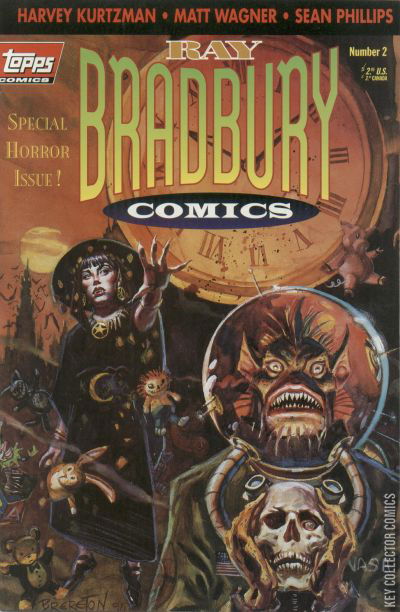 Polybagged with 3 trading cards. Cover by Daniel Brereton. Edited by Howard Zimmerman. Stories and art by Ray Bradbury, Harvey Kurtzman, Matt Wagner, Sean Phillips, Al Feldstein, and Jack Davis, plus an introduction by Ray Bradbury. Top comics artists adapt stories by science-fiction master Bradbury: It Burns Me Up, by Harvey Kurtzman and Matt Wagner; Touched by Fire, by Sean Phillips (both reprinted from The Ray Bradbury Chronicles (1992) #4); The Black Ferris (reprinted from ECs Haunt of Fear (1950) #18) by Al Feldstein and Jack Davis.