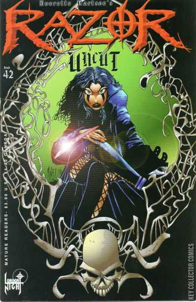 Home / London Night / Razor / Razor #42 London Night Released December 1997 Razor #42 Add to Collection Want It Synopsis No synopsis available. Issue 44 of 53 Add to Collection Buy it on eBay Buy on eBay Low $1 Mid $2 High $3 Synopsis No synopsis available. Details Series Razor Cover Date December 1997 Pages N/A UPC N/A Cover Price N/A Final Order Cutoff N/A Creators No creators listed. Price Guide Log in or subscribe to access detailed graded price information and market insights. Log In Subscribe