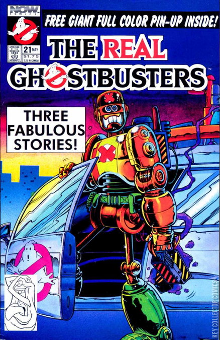 Stories by John Carnell, Phil Elliott and Andrew Brenner. Art by Phil Elliott, Andy Lanning and Anthony Williams. Cover by Andy Lanning. A filler issue featuring reprints of stories from the Marvel UK Real Ghostbusters comic. Egons robot Ghostbuster goes awry; The Ghostbusters deal with a ghost who's turning a man's suits plaid every time he puts them on; Neanderthal warriors invade the city. Ecto-X; The Spooked Suit; Neanderthal Nightmare.